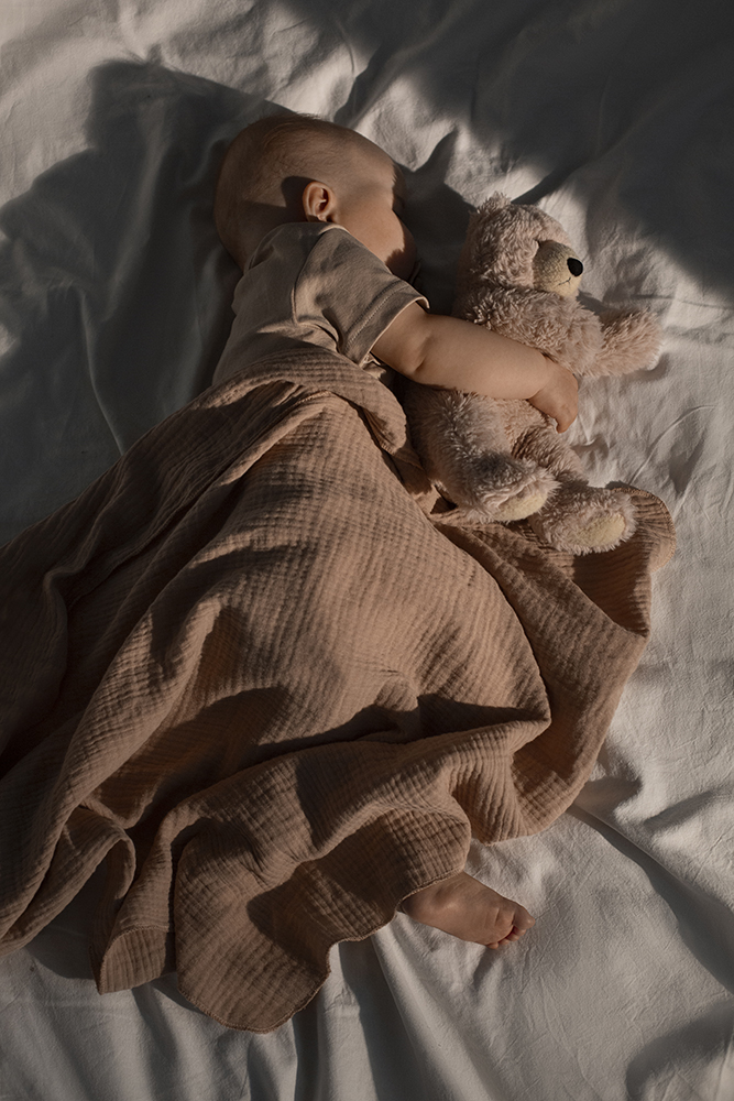 Copertine delicate in lana e cotone naturale, pensate per avvolgere il sonno dei più piccoli con calore, morbidezza e sicurezza.